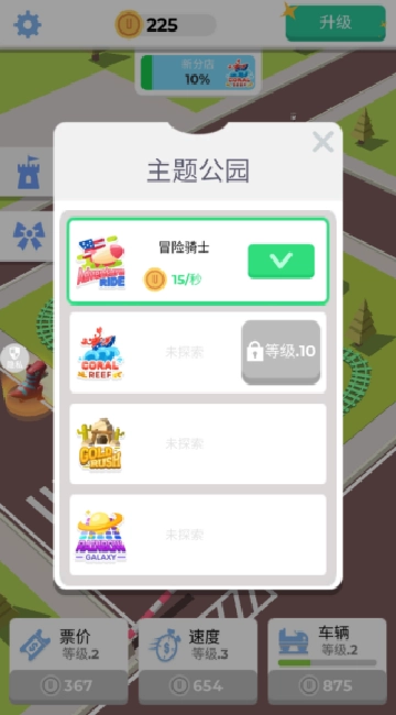 不断升级你的公园,就能解锁更多主题场景并挑战运营。