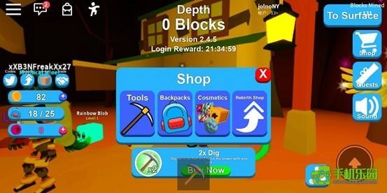 当积累到一定数量的金币后,我们就可以去寻找带有购买标识的商人进行购物啦!只要进入那个黄色的圈圈,商店界面就会弹出来,里面总共有四个分类板块,分别是工具类、背包类、装扮类(在这里能买到一些发型、宠物之类的物品)以及重生商店(可以购置一些道具)。在游戏前期,重点是购买更高级别的工具和背包,这样一来就不用频繁返回地面,能有效提升挖矿(获取金币)的效率哦~等拥有了高级道具,我们就能慢慢深入到更深层的地下挖矿,有机会挖到更优质的物品,要是运气不错的话,还能挖到金箱子、钻石这类好东西呢,不过相应地,对挖矿工具的级别要求也会更高!