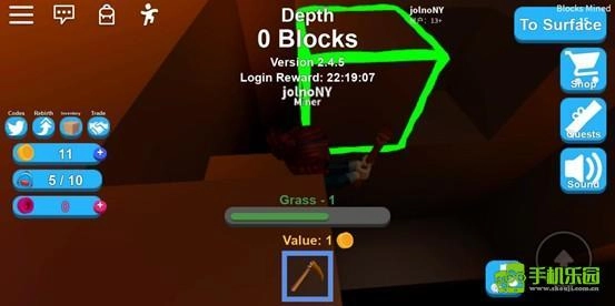首先我们需要前往矿场,接着点击屏幕正下方的木镐把它装备好,之后点击想要挖掘的矿石,这时矿石周围会出现绿色的框,按住矿石就能启动挖掘操作啦!选定目标矿石后,我们就能看到当前这块矿石的价值,刚开始的时候我们只能挖掘价值1金币的矿石,而且一次最多只能采集10个矿石,总共价值10金币。