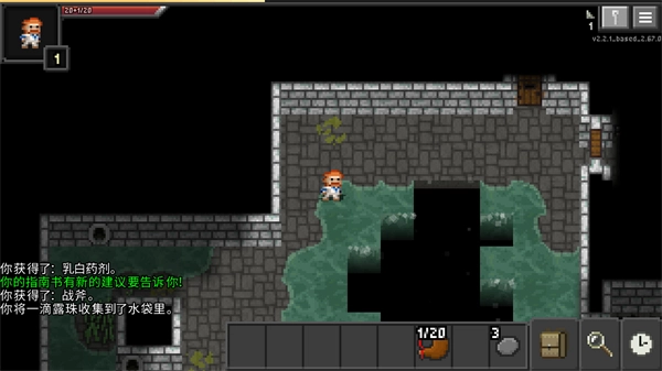 操控角色移动,拾取下水湿鞋道具,推进地牢探索。