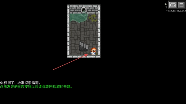 在获取地牢探索指南之后,按照提示点击那个发光的按钮来阅读书籍,从而了解地牢的相关规则。