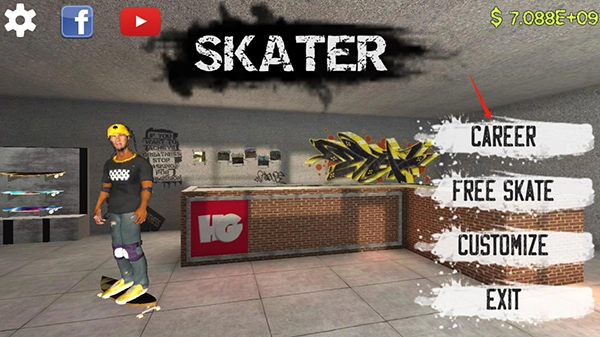 打开滑板模拟器游戏,点击“CARER”开始游戏。