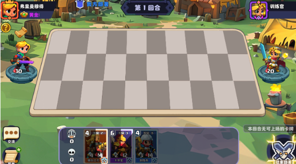 2、游戏采用三路回合制对战玩法,从图中能看到,上中下三条路径都可供我们放置随从,借助随从将对方角色的血量耗尽就能赢得胜利,角色下方的爱心图标就是我们的血量值,完成放置操作后,点击右下角的结束部署按钮,便会轮到对方进行回合操作。